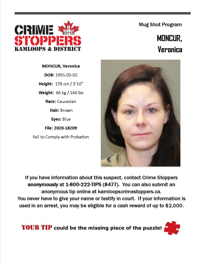 If you have any information please contact the Kamloops RCMP at 250-828-3000. If you wish to remain anonymous, call Crime Stoppers at 1-800-222-8477 or leave a tip on our website.